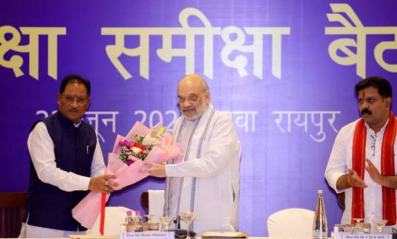 रायपुर : केंद्रीय गृह एवं सहकारिता मंत्री अमित शाह ने नक्सलवाद पर छत्तीसगढ़, आंध्र प्रदेश, तेलंगाना, मध्य प्रदेश, महाराष्ट्र, झारखंड और ओडिशा के डीजीपी/एडीजीपी एवं वरिष्ठ अधिकारियों के साथ रायपुर में समीक्षा बैठक की अध्यक्षता की। केन्द्रीय गृह मंत्री ने कहा कि पिछले डेढ़ साल में विष्णुदेव जी की सरकार और उपमुख्यमंत्री एवं गृह मंत्री विजय शर्मा जी की सबसे बड़ी उपलब्धि है कि उन्होंने एक रुके हुए नक्सल विरोधी अभियान को द्रुत गति से चलाया और राज्य को नक्सलवाद से मुक्त करने की दिशा में आगे बढ़े हैं। उन्होंने कहा कि विष्णुदेव जी और विजय शर्मा जी ने नक्सलविरोधी अभियानों को न सिर्फ धार दी, बल्कि समय-समय पर इस अभियान का मार्गदर्शन किया, सुरक्षाबलों का हौंसला भी बढ़ाया और संपूर्णता के साथ इस लड़ाई में बहुत बड़ा योगदान दिया है।