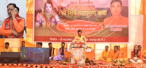 रायपुर। मुख्यमंत्री श्री विष्णु देव साय ने पवित्र श्रावण मास के चौथे सोमवार के शुभ अवसर पर रायपुर स्थित मुख्यमंत्री निवास कार्यालय से जशपुर जिले के कुनकुरी विकासखंड अंतर्गत मयाली में विश्व के सबसे बड़े प्राकृतिक शिवलिंग मधेश्वर पहाड़ के समीप आयोजित दिव्य शिव महापुराण कथा के समापन समारोह को ऑनलाइन माध्यम से संबोधित किया। श्रावण मास की इस सात दिवसीय दिव्य कथा श्रृंखला का आयोजन 28 जुलाई से 4 अगस्त 2025 तक महामधेश्वर धाम समिति द्वारा किया गया, जिसमें अयोध्या के प्रसिद्ध कथावाचक पूज्य श्री देवकीनंदन ठाकुर जी महाराज ने शिव महापुराण की अमृतमयी वाणी से हजारों श्रद्धालुओं को मंत्रमुग्ध किया। मुख्यमंत्री ने व्यासपीठ से जुड़े सभी संतजनों को प्रणाम करते हुए समिति को भव्य आयोजन के लिए बधाई एवं आभार प्रकट किया।