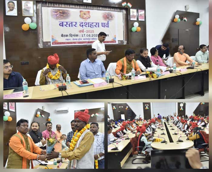 महापौर संजय पांडेय ने कहा कि बस्तर दशहरा हमारे शहर की सांस्कृतिक विरासत है । इस पर्व को देखने और जानने के लिए देश दुनिया के पर्यटक आते हैं, पर्यटकों को अतिथि देवों भव: के रूप में स्वागत के लिए जगदलपुर तैयार है । बैठक में कलेक्टर हरिस एस ने सभी का स्वागत करते हुए कहा कि विगत वर्ष के समान ही इस वर्ष में भी भव्य रूप से दशहरा को मनाया जाएगा । उन्होंने बताया कि वर्ष 2024 में ऐतिहासिक बस्तर दशहरा पर्व के उपयोग की गई बजट और वर्ष 2025 बस्तर दशहरा आयोजन के लिए आबंटित बजट की जानकारी दी । कार्यक्रम में बस्तर दशहरा समिति के सचिव एवं तहसीलदार द्वारा बस्तर दशहरा महोत्सव की प्रमुख तिथियों और विधानों की जानकारी दी ।