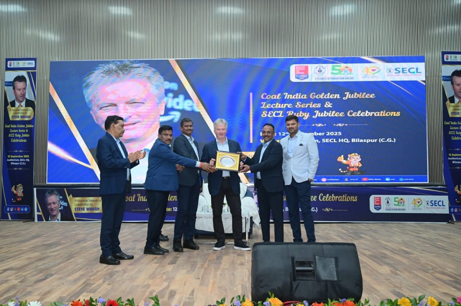 00 एसईसीएल में कोल इंडिया गोल्डन जुबली लेक्चर सीरीज़ एवं एसईसीएल रूबी जुबली के अंतर्गत मशहूर ऑस्ट्रेलियाई क्रिकेट कप्तान, वर्ल्ड कप विजेता एवं समाजसेवी स्टीव वॉ ने दिया प्रेरक व्याख्यान