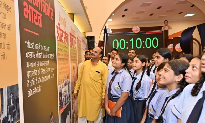 रायपुर – आज रायपुर नगर पालिक निगम के सभापति सूर्यकान्त राठौड़ ने छत्तीसगढ़ शासन के जनसम्पर्क विभाग द्वारा राजधानी शहर में ऐतिहासिक टाउनहाल के प्रांगण में भारत गणराज्य के यशस्वी प्रधानमंत्री नरेन्द्र मोदी के 75वें जन्मदिवस दिनांक 17 सितम्बर 2025 से लगायी जा रही फोटो प्रदर्शनी का बीपी पुजारी स्कूल राजातालाब के विद्यार्थियों सहित प्रत्यक्ष निरीक्षण किया. इस दौरान टाउनहाल में बीपी पुजारी स्कूल की प्रभारी प्राचार्य सुश्री बावनकर, नगर निगम संस्कृति विभाग की सुश्री निष्ठा जोशी की उपस्थिति रही. नगर निगम सभापति सूर्यकान्त राठौड़ ने बीपी पुजारी स्कूल के विद्यार्थियों से प्रधानमंत्री नरेन्द्र मोदी की जीवनी पर आधारित प्रश्न पूछे. प्रश्नों के सही जवाब देने वाले स्कूल के विद्यार्थियों को सभापति द्वारा प्रोत्साहन स्वरूप पुरस्कृत किया.